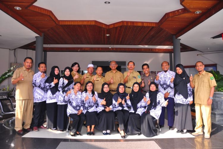 Kadis Pendidikan Iman Hidayat dan sejumlah pejabat di instansi itu, berfoto bersama dengan guru berprestasi yang akan ikuti lomba olimpiade guru di tingkat provinsi Kaltim. ©2016 Merdeka.com