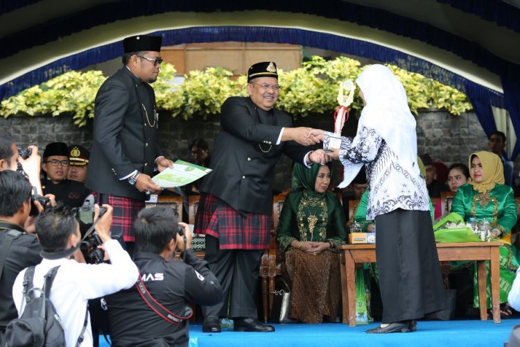 Bupati Ismunandar didampingi Wabup Kasmidi Bulang ketika menyerahkan penghargaan kepada salah seorang guru berprestasi. ©2016 Merdeka.com