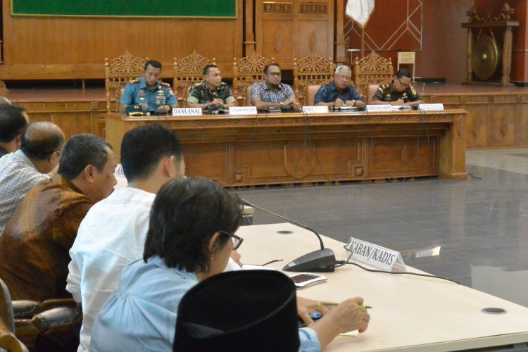 Wabup Kasmidi Bulang ketika memimpin rapay persiapanpelaksanaan apel nusantara bersatu yang direncanakan Rabu (30/11) besok, di ruang Meranti, kantor bupati. ©2016 Merdeka.com