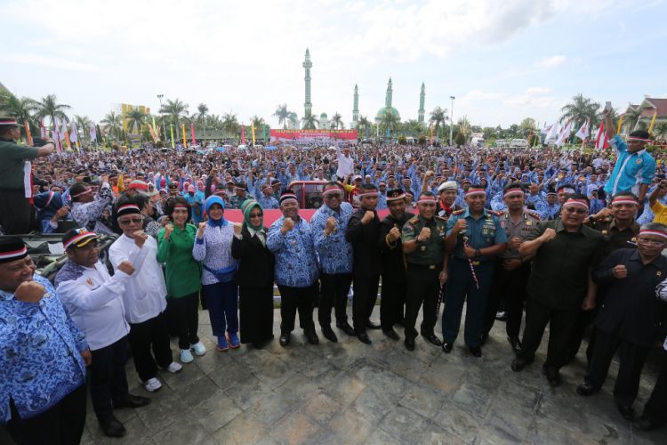Bupati berbaur dengan ribuan warga ikut apel dan ikrar nusantara bersatu