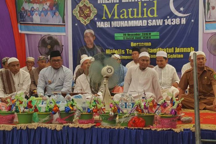 Wabup Kasmidi Bulang saat menghadir acara peringatan Maulid Nabi Muhammad SAW di kecamatan Sangatta Selatan dan membeberkan rencana pembangunan di kecamatan tersebut tahun 2017 mendatang. ©2016 Merdeka.com