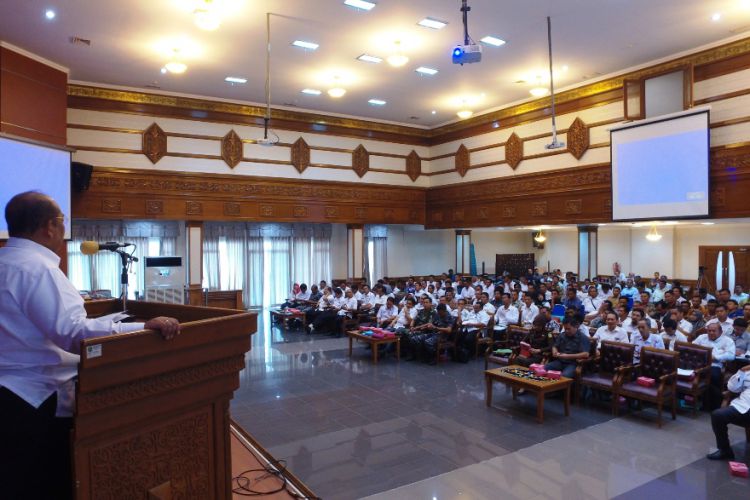Bupati Kutim ismunandar saat memberikan sambutan pada acara pembekalan bagi panitia pemilihan kepala desa serentak di Kutim beberapa waktu lau di ruang Meranti, kantor bupati dan dihadiri pejabat lingkup Pemkab Kutim. ©2016 Merdeka.com
