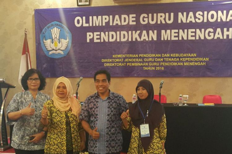 Siti Yulianti dan rekannya serta didampingi Tri Untiastuti dari Dinas Pendidikan saat mengikuti olimpiades guru di Jakarta dan meraih peringkat lima nasional. ©2016 Merdeka.com