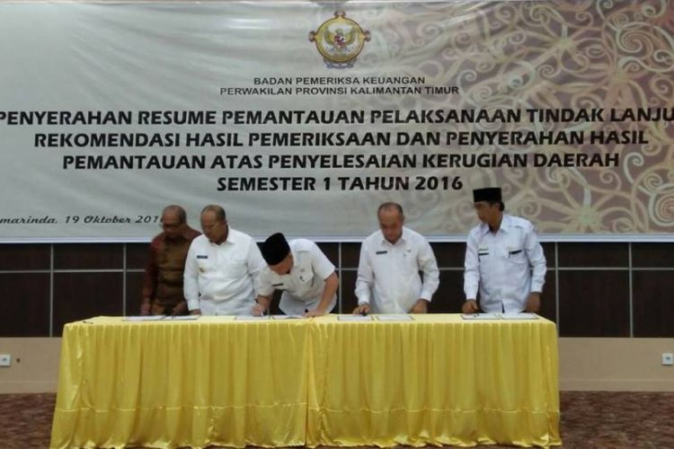 Resume pemantauan pelaksanaan tindak lanjut rekomendasi hasil pemeriksaan semester pertama untuk Kabupaten Kutai Timur (Kutim) tahun 2016, ditandatangani Kepala Perwakilan BPK Kaltim Adi Sudibyo dan Bupati Kutim Ismunandar.