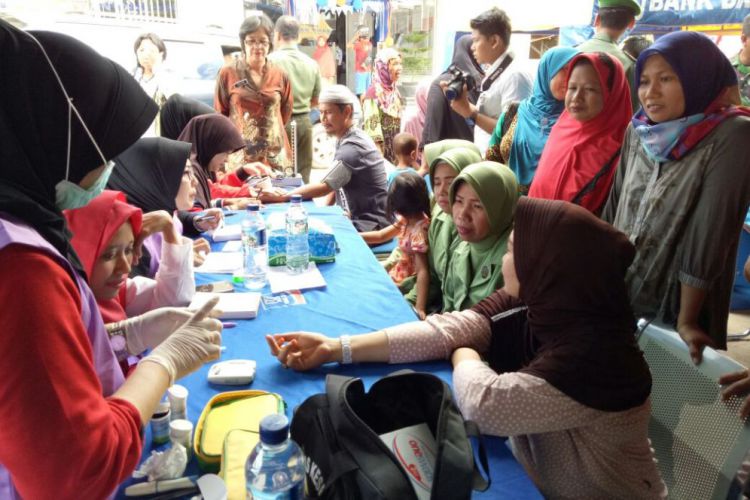 Warga masyarakat antri untuk melakukan pemeriksaan kesehatan secara gratis yang digelar Kodim 0909/Sangatta dan kegiatan itu sekaligus aksi sosial donor darah. ©2016 Merdeka.com