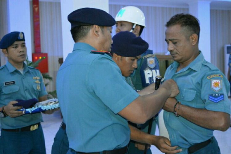 Danlanal Sangatta Letkol Laut Mulyan Budiarta saat melepas baju dinas prajurit TNI AL yang dipecat karena konsumsi narkoba. ©2017 Merdeka.com