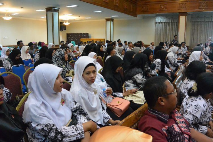 Ratusan guru saat menghadiri peringatan hari guru dan HUT PGRI di ruang Mranti kantor bupati beberapa waktu lalu. ©2017 Merdeka.com