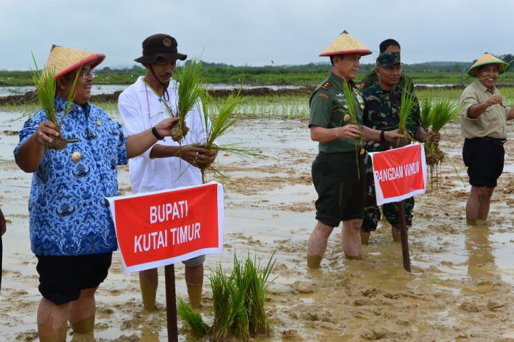 Seperti diketahui, Senin (19/9) lalu, Pangdam VI Mulawarman Mayjen TNI Jhoni Lumban Tobing dan Bupati Ismunandar beserta jajarannya melakukan penanaman padi serentak di desa Sepaso, kecamatan Bengalon. Meski di tengah gerimis, jenderal bintang dua dan orang nomor satu di Kutim itu tak canggung masuk ke sawah untuk bercocok tanam padi. Adapun lahan pertanian yang ditanami padi seluas 30 hektare, dengan biaya cetak sawah sebesar Rp 475 juta.