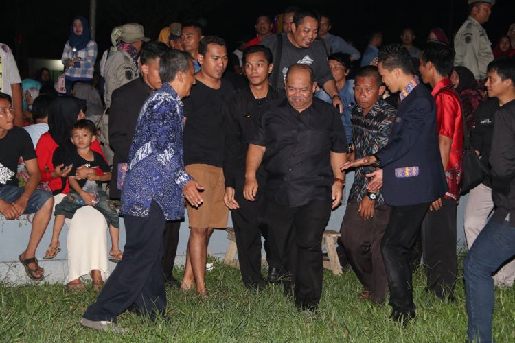 Bupati Ismunandar saat hadir pada acara malam Final Pekan Olahraga dan Pentas Gemilang Mahasiswa STIE (Sekolah Tinggi Ilmu Ekonomi) Nusantara 2016 di lapangan Taman Bersemi, Sangatta Utara. ©2016 Merdeka.com