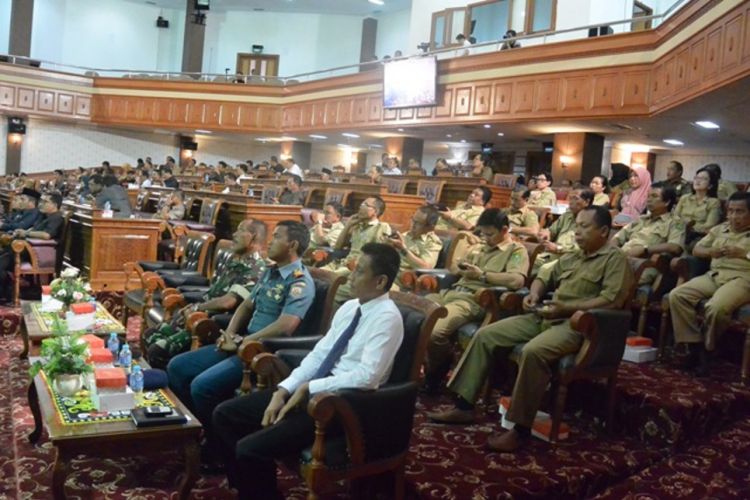 Para wakil rakyan dan undangan yang hadir dalam sidang paripurna di Gedung DPRD Kutim, dengan agenda pengesahan Perda Organisasi Perangkat Daerah (OPD). ©2016 Merdeka.com