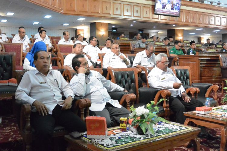 Sejumlah pejabat tampak hadir pada rapat paripurna di gedung DPRD membahas tentang RAPBDP mengenai tanggapan pemerintah terhadap fraksi-fraksi. ©2016 Merdeka.com