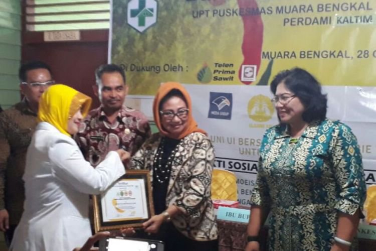 Wakil Ketua DPRD Kutim Hj Encek UR Firgasih menyerahkan piagam kepada Ketua Iluni yang melakukan bhakti sosial operasi katarak kepada warga di pedalaman. ©2017 Merdeka.com