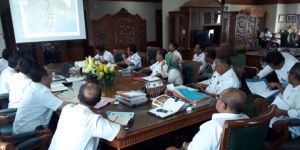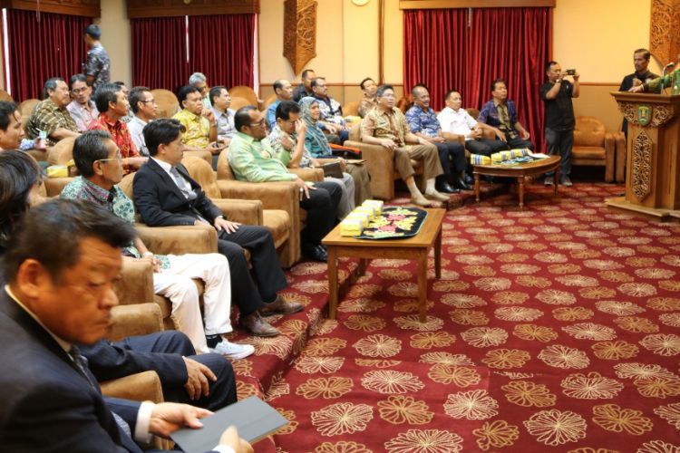 Bupati Ismunandar saat memberikan sambutan sebelum acara penandatanganan MoU antara perusahaan Jepang denhgan Kutim di ruang tempudau. ©2016 Merdeka.com