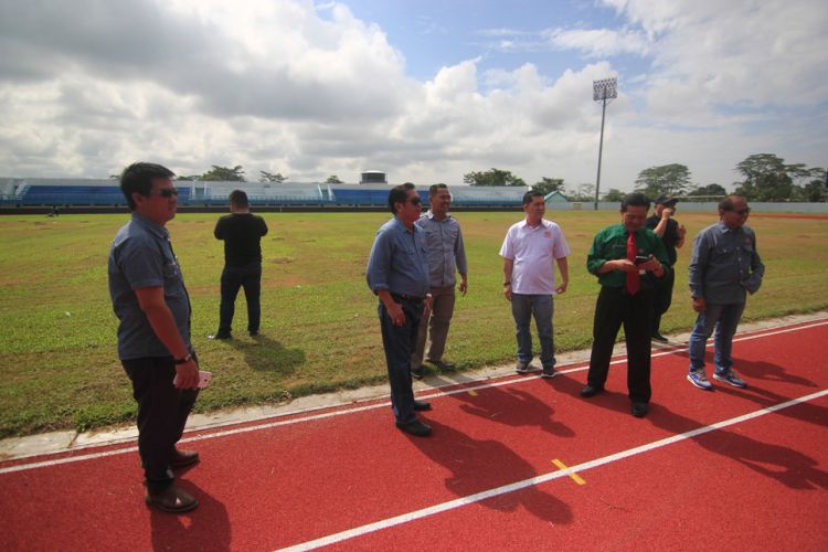 Ketua KONI Kaltim Zuhdi Yahya didampingi Ketua KONI Kutim Johansyah Ibrahim dan pengurus lainnya saat meninjau stadion Kudungga. ©2017 Merdeka.com