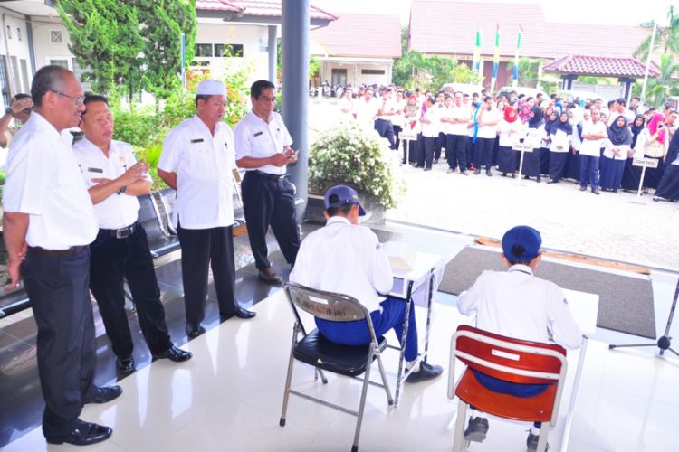 Dua pelajar yang sudah kursus speed reading, memperagakan membaca dengan cepat di hadapan Kadis Pendidikan dan kebudayaan Kutim Iman Hidayat serta pegawai Disdikbud . ©2016 Merdeka.com