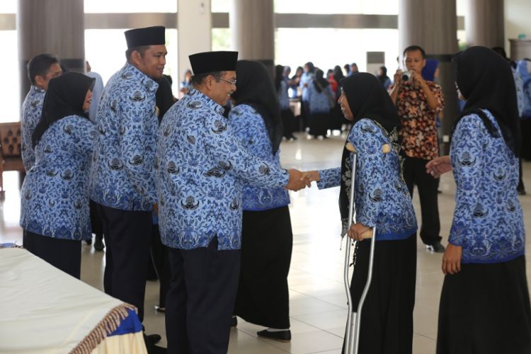 Bupati Ismunandar dan Wabup Kasmidi Bulang saat bersilaturahmi dengan jajaran pegawai Pemkab Kutim. Setelah Perda OPD disahkan, tak lama lagi bakal bergulir mutasi. ©2016 Merdeka.com