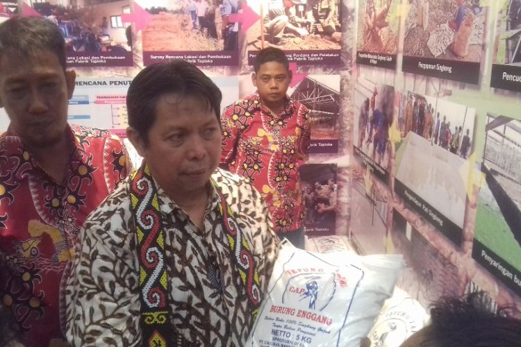 Pengunjung expo di stand Kutim melihat produk tepung tapioka yang berbahan baku singkong gajah yang diproduksi di kecamatan Rantau Pulung. ©2016 Merdeka.com