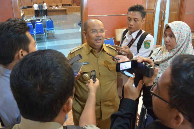 Bupati Ismunandar menjelaskan mengenai tahapan pelaksanaan Pilkasdes serentak kepada awak media, usai rapat koordinasi kemarin di ruang meranti, kantor bupati. ©2016 Merdeka.com