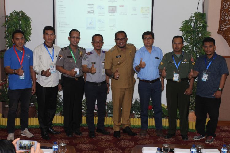 Wabup Kasmidi Bulang bersama sejumlah pejabat dan peserta pelatihan jurnalistik radio. ©2016 Merdeka.com
