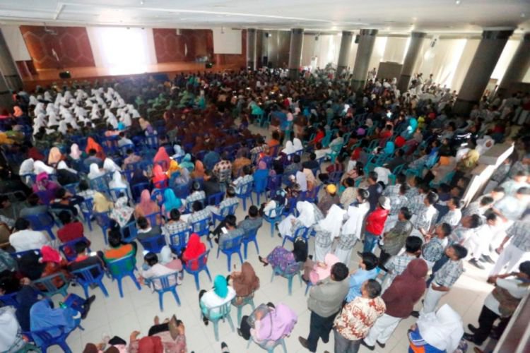 Gedung Serba Guna (GSG) Bukit Pelangi, Sangatta Utara, Kutim dipenuh pelajar dan masyarakat yang ikut nobar film G30S/PKI . ©2017 Merdeka.com