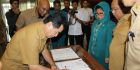 Ketua TP PKK Kutim Hj Encek UR Firgasih melantik ketua TP PKK tiga kecamatan, Bengalon, Muara Bengkal dan Long Mesengat di ruang meranti, kantor bupati. ©2017 Merdeka.com
