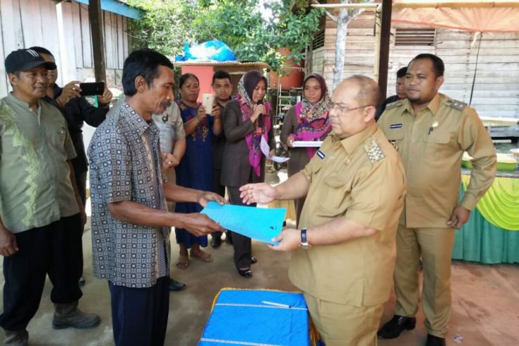 Bupati Ismunandar menerima permohonan bantuan dari masyarakat mengenai pemasangan listrik, saat melakukan kunjungan kerja ke desa-desa didampingi Wabup Kasmidi Bulang belum lama ini. ©2017 Merdeka.com
