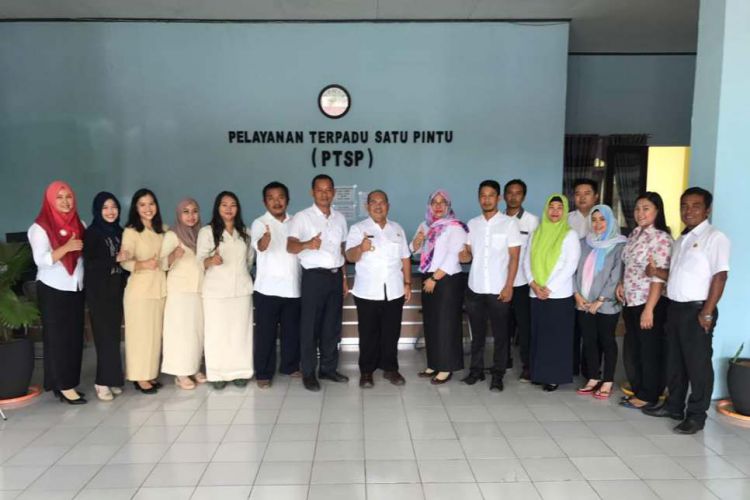 Bupati Ismunandar foto bersama degan pejabat dan staf PMD dan PTSP yang mengelola perizinan, saat melakukan peninjauan. ©2017 Merdeka.com
