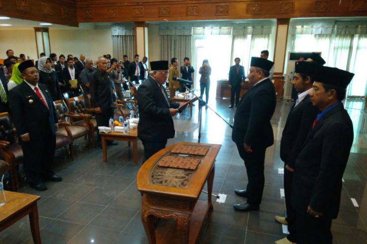 Ketua Dewan Pembina YPKT Irawansyah saat melantik pengurus Yayasan Pendidikan Kutim, disaksikan Bupati Ismunandar dan ketua Stiper Juraimi dan undangan lainnya. ©2017 Merdeka.com