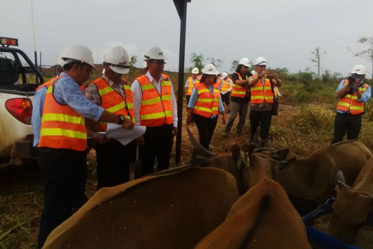 Dirjen PKH I Ketut Diarmita didampingi manajemen PT KPC meninjau peternakan sapi di PESAT, kawasan tambang KPC belum lama ini. ©2017 Merdeka.com