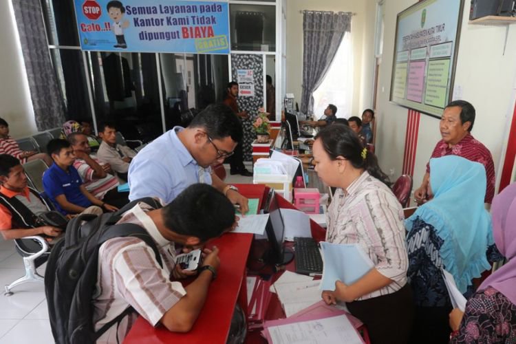 Suasana pelayanan di kantor Disdukcapil Kutim yang cukup marak dan antrian, namun petugas harus tetap sabar dan memberikan pelayanan maksimal. ©2017 Merdeka.com