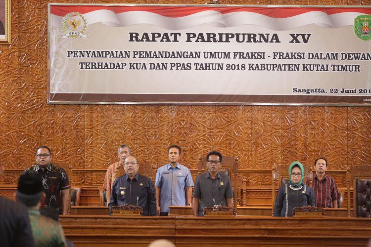 Hal itu terungkap dalam pemandangan umum fraksi-fraksi DPRD Kutim menanggapi penyampaian nota pengantar Kebijakan Umum Anggaran dan Prioritas Plafon Anggaran Sementara (KUA-PPAS) dalam sidang paripurna DPRD Kutim Kamis (22/6) lalu. Paripurna itu dipimpin Wakil Ketua DPRD Yulianus Palangiran didampingi Wakil Ketua DPRD Hj Encek UR Firgasih dan dihadiri 25 anggota dewan lainnya.
