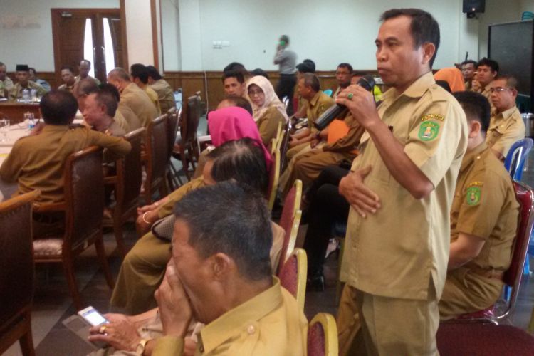 Kepala TU RSUD Kudungga M Yusuf (berdiri) memberikan informasi bawah di rumah sakit tersebut masih kekurangan dokter umum. ©2017 Merdeka.com