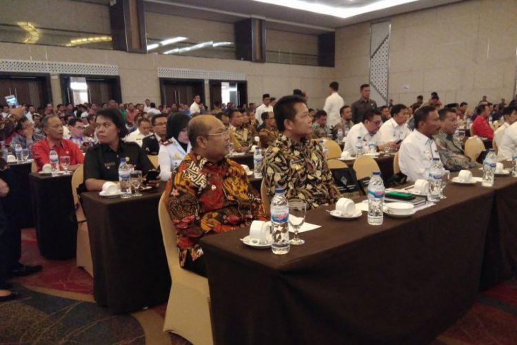 Bupati Kutim Ismunandar (batik coklat depan kiri) bersama bupayi/walikota se-Indonesia Timus menghadiri workshop keuangan daerah yang digekar BPK di Makassar. ©2017 Merdeka.com
