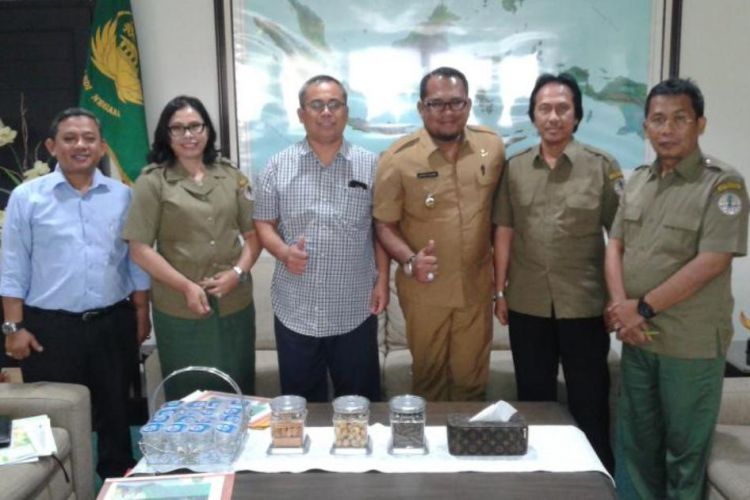 Wabup Kasmidi Bulang dan Kepala Dinas PU Aswandini Eka Tirta serta pejabat lingkup Kementeria LHK di Jakarta usai berkoordinasi. ©2017 Merdeka.com
