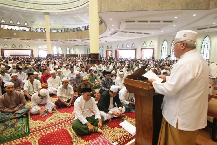 Seskab Kutim Irawansyah membacakan sambutan Bupati Ismunandar pada saat salat Idul Adha 1438 H di masjid Agung, Sangatta Utara, Kutim. ©2017 Merdeka.com