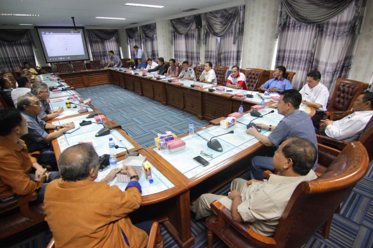 Suasana pertemuan KONI Kaltim yang dipimpin Ketuanya Zuhdi Yahya dengan KONI Kutim yang diketuai Johansyah Ibrahim dan dipimpi Asisten Pemerintahan Umum Kesra Mugeni di ruang Arau. ©2017 Merdeka.com