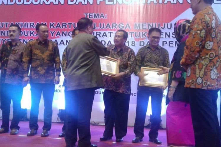 Kadisukcapil ketika menerima penghargaan akta kelahiran yang diserahkan Wakil Gubernur Gorontalo pada saat Raker kependudukan dan cacatan sipil. ©2017 Merdeka.com