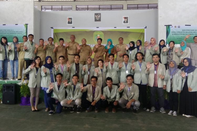 Bupati Ismunandar dan sejumlah pejabat lingkup Pemkab Kutim foto bersama dengan mahasiswa UGM yang siap vote rock art Sangkulirang. ©2017 Merdeka.com