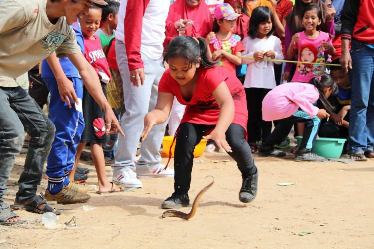 Lomba menangkap ikan belut yang dpesertanya sebagian anak-anak cukup ramai dan heboh, kegiatan ini untuk memeriahkan HUT ke-72 RI tahun 2017. ©2017 Merdeka.com
