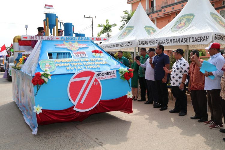 Ada mobil yang disulap jadi panser mewakili Purna Paskibraka Indonesia (PPI) Kutim, tank tempur lengkap dengan personel TNI AD dari Kodim 0909 Sangatta, serta kapal dari Dispenda. Berikutnya ada pula peserta yang membawa 'sapi' bersama petani dari Distanak, desain jembatan oleh Dinas PU. Dari paguyuban juga ada reog, komunitas motor besar, sport dan vespa. Sambil konvoi, peserta yang memiliki tugas memberi pelayanan langsung ke masyarakat seperti Disdukcapil, Dispenda, BPPKB dan beberapa instansi lainnya sambil menyosialisasikan programnya melalui pengeras suara. Pawai berakhir sekitar pukul 11.00 wita di Jalan Soekarno-Hatta.