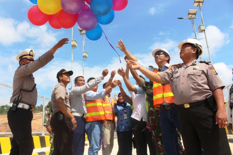 Sejumlah pejabat dan manajemen KPC serta stakeholder kompak melepas balon sebagai tanda peresmian jalan Pedayak di Bengalon. ©2017 Merdeka.com