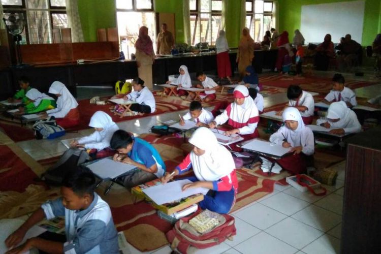 Suasana lomba menggambar yang melibatkan kalangan pelajar dalam rangka memperingati Hari lingkungan Hidup se-dunia yang dilaksanakan Dinas LH Kutim. ©2017 Merdeka.com