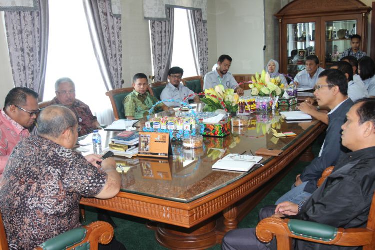 Bupati Ismunandar didampingi Wabup Kasmidi Bulang dan Sekda Irawansyah ketika menerima manajemen PT Indominco Mandiri di ruang kerjanya. ©2016 Merdeka.com