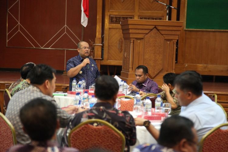 Bupati Kutim Ismunandar didampingi Wabup Kasmidi Bulang memberikan sambutan dalam pertemuan dengan perusahaan tambang di Kutim. ©2017 Merdeka.com