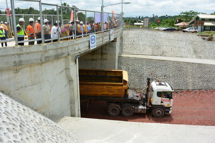 "Kami sangat senang melihat proyek (underpass) ini bisa selesai dan nanti digunakan untuk lalu lintas umum. Dulu sewaktu awal pemekaran kabupaten Kutai Timur (Kutim) yang melintasi jalan ini sangat sedikit, paling truk pengangkut kayu. Namun seiring masuknya investasi perkebunan aktivitas masyarakat semakin meningkat. Sehingga jalur ini rawan kecelakan, jadi dengan hadirnya underpass ini bisa memperlancar distribusi barang dan jasa dan lalu lintas masyarakat di sekitarnya,” jelas Ismunandar.