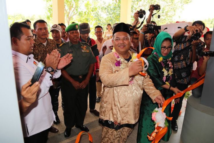 Bupati Ismunandar didampingi istrinya Hj Encek UR Firgasih ketika meresmikan Ruma Pintar Pemilu di kantor KPUD Kutim. ©2017 Merdeka.com