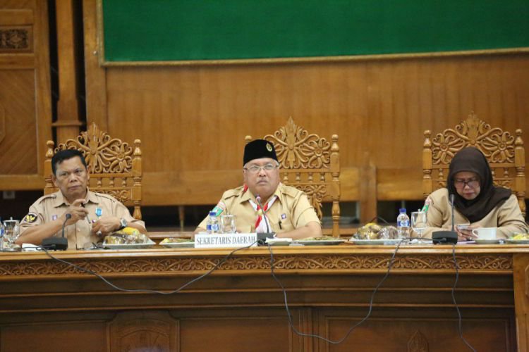 seskab Irawansyah ketika memimpin coffe moorning didampingi Asisten Pemkesra Mugeni dan Asisten Administrasi Umum Julianti, salah satunya membahas transaksi non tunai. ©2017 Merdeka.com
