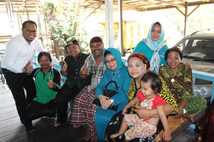 Bupati dan istri serta wabup dan istri tampak akrab dengan keluarga Baharuddin di Rantau Pulung, saat berkunjung ke rumahnya. ©2016 Merdeka.com