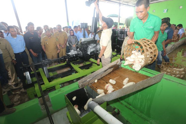Bupati Ismunandar dan Wabup Kasmidi Bulang ketika meninjau pabrik singkong di kecamatan Rantau {Pulung belum lama ini. ©2016 Merdeka.com