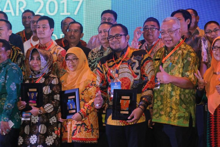 Wabup Kasmidi Bulang bersama kepala daerah lain se-Indonesia ketika mengikuti kegiatan City Sanitation Summit di Makasaar belum lama ini. ©2017 Merdeka.com